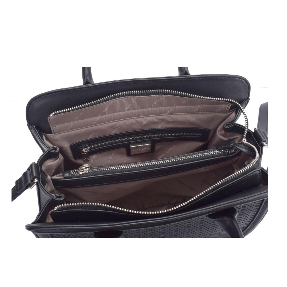 Interior: 2 Compartments. A split compartment with a zip closure. 1 slip pockets. 1 zip slip pocket. Dust bag.